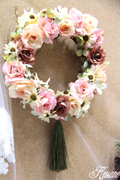 内容・・・木のリースにシルクフラワーなどでアレンジしました