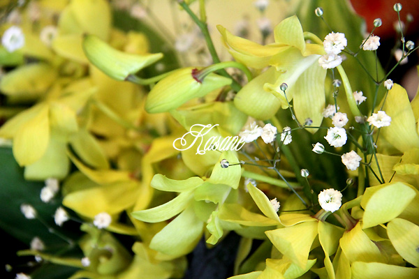結局決まったお花はお花持ちの関係で、百合、薔薇、デンファレ、かすみ草の4種類。